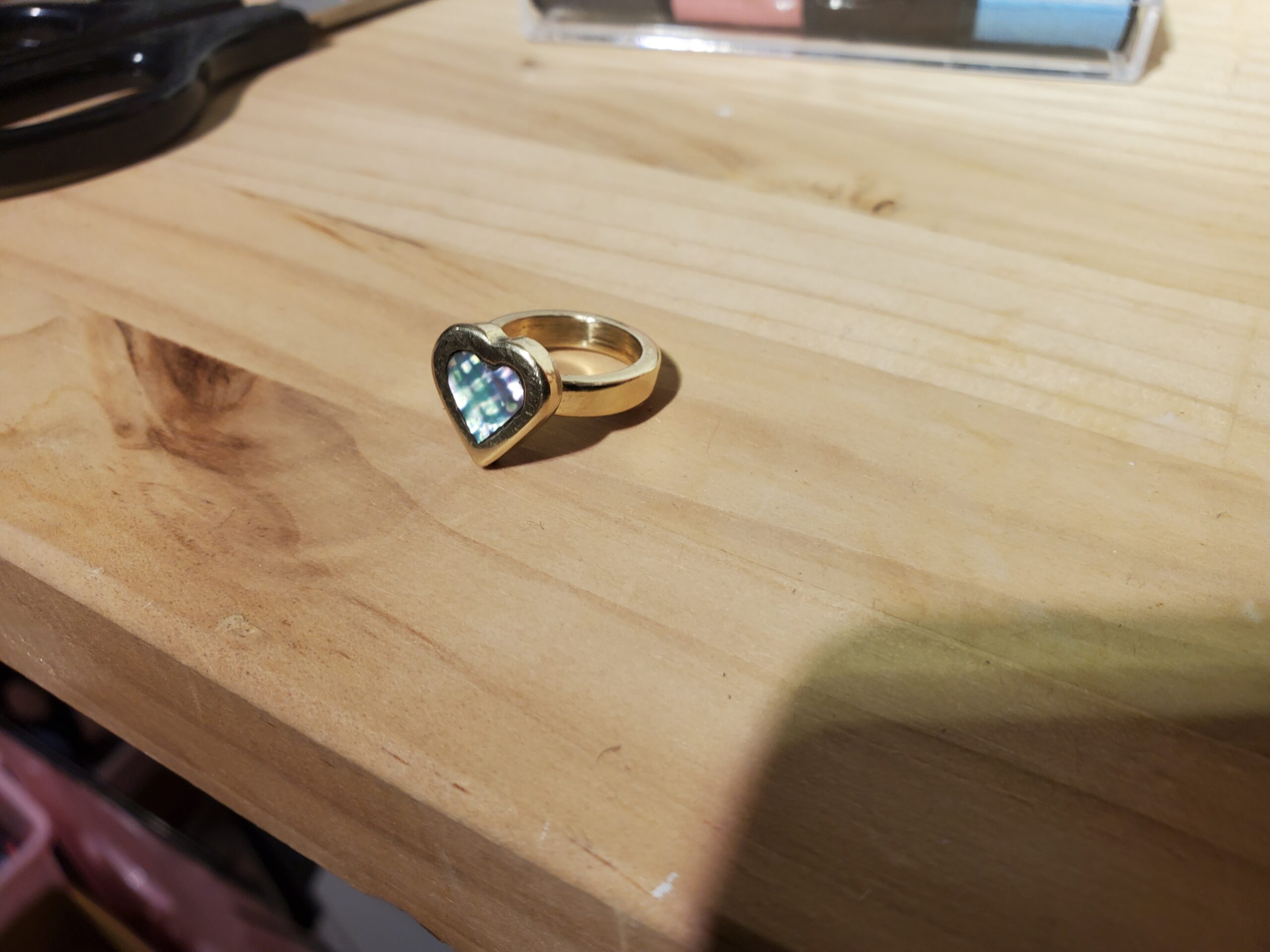 Brass & mother of pearl heart shaped ring Brass & mother of pearl heart shaped ring Brass & mother of pearl heart shaped ring