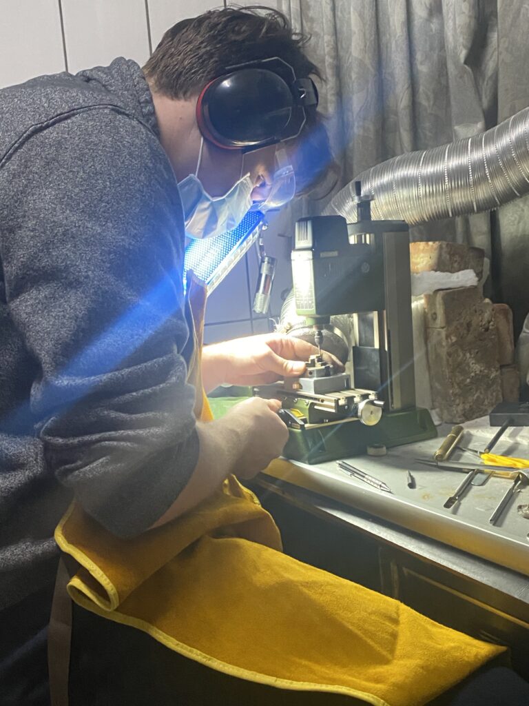 There are many ways to make jewelry. For myself I like to use solid pieces of metal and shaping them using sawing, grinding, rolling, engraving, soldering and hammering techniques. I enjoy inlaying my jewelry with mother of pearl that I found and required in Taiwan.